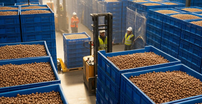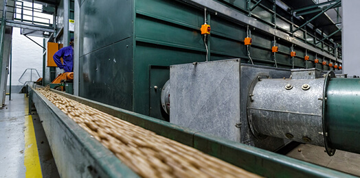 Our temperature- and humidity-regulated storage maintains nut quality for 8-12 weeks, allowing us to sort based on predictive lab data rather than relying solely on raw output.