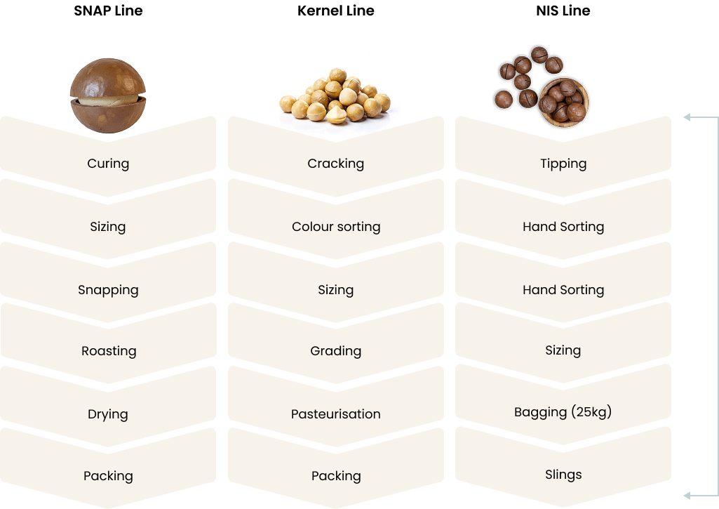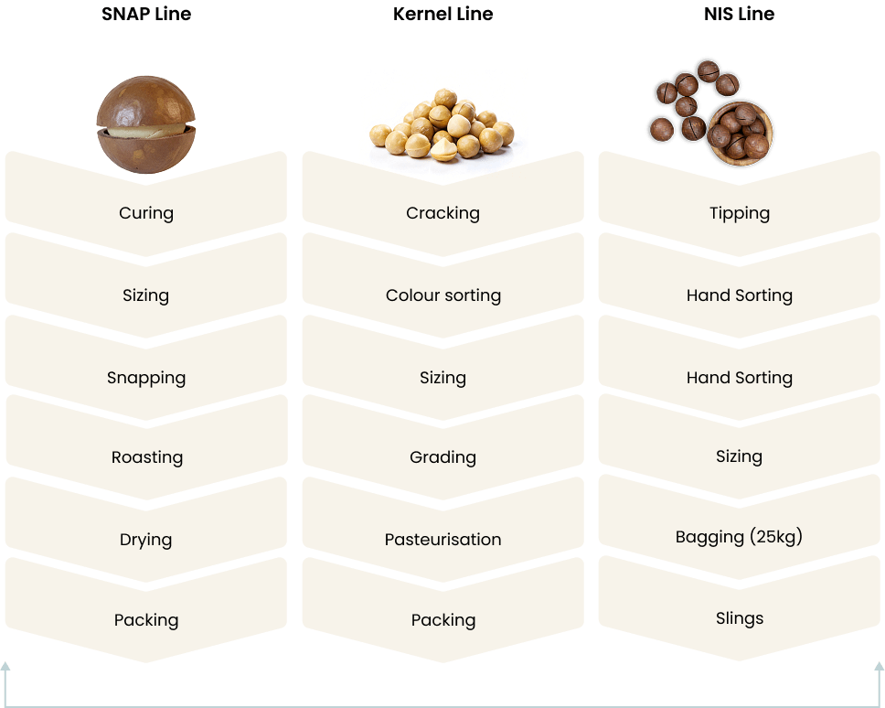 Every macadamia undergoes a carefully managed process to ensure the highest quality and food safety from farm to final pack: