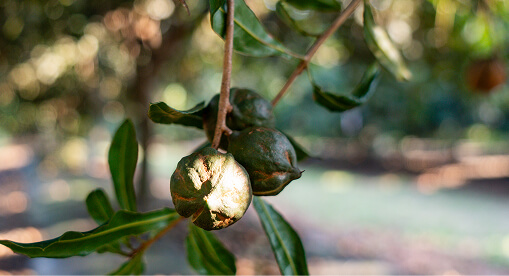 Once harvested, nuts are de-husked on-farm to remove the green outer husk before being cleaned, sorted, and dried to the correct moisture levels. They are then stored securely until transported to Golden Macadamias' world-class factory. Growers receive continuous training to ensure each batch is handled with the highest standards.